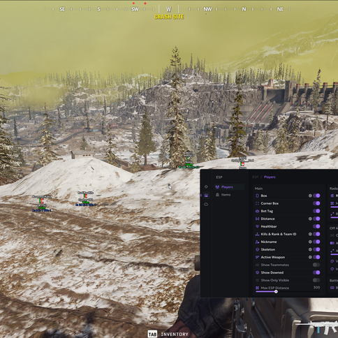- Player Info (Nickname, distance, weapon, ping, kills, rank)
